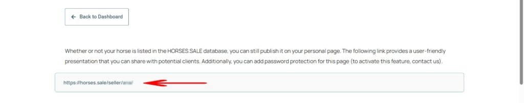 A Personal Page is your own webpage on HORSES.SALE where you can present your horses online. It is completely free to use, contains no external links, and has no usage limitations. You can post your horses and share the link anywhere — on social media, in messages, or on your own website.