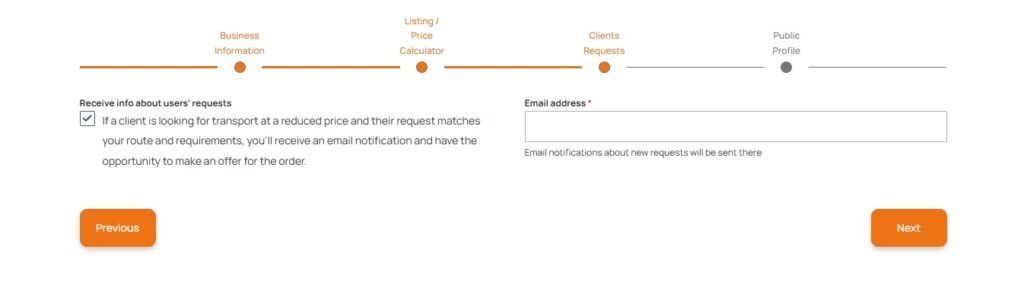 Step 2b. Add your pricing details to make your company appear in search results with estimated transport costs.