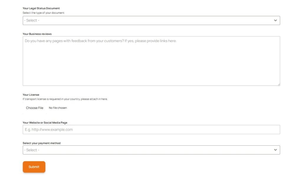 Step 2. Add your business details. The registration form includes several steps. The more information you provide, the more Move Your Horse features will be available to you.